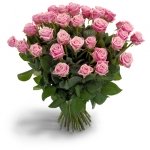 Lila och rosa kronblad står i centrum i den härliga bukett av rosor, gerbera och krysantemum. En bukett som inte gör någon besviken!