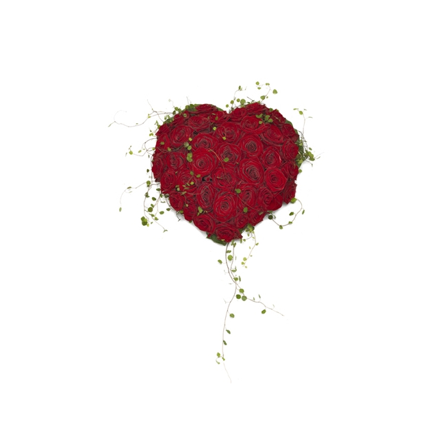 Detta hjärta är en symbol för min eviga kärlek. Bevara det tills vi möts igen. Den här sorgdekorationen består av röda rosor och slideranka, vackert formade till ett hjärta.