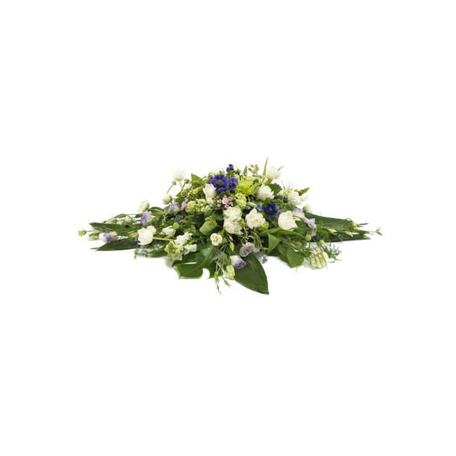 Låt denna stjärna leda dig på den sista färden. Uppifrån ser den här sorgdekorationen ut som en stjärna. En perfekt komposition där lila stråk av anemoner och tulpaner samsas med lejongap och gentiana och bildar en nebulosa som symboliserar universum.