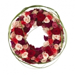 Gripande och varm. En hälsning med tacksamhet och djup beundran. Denna solfjäderformade sorgdekoration är en färgrik kombination av blommor och påminner om en sommaräng. Generös och otämjd till sin natur.