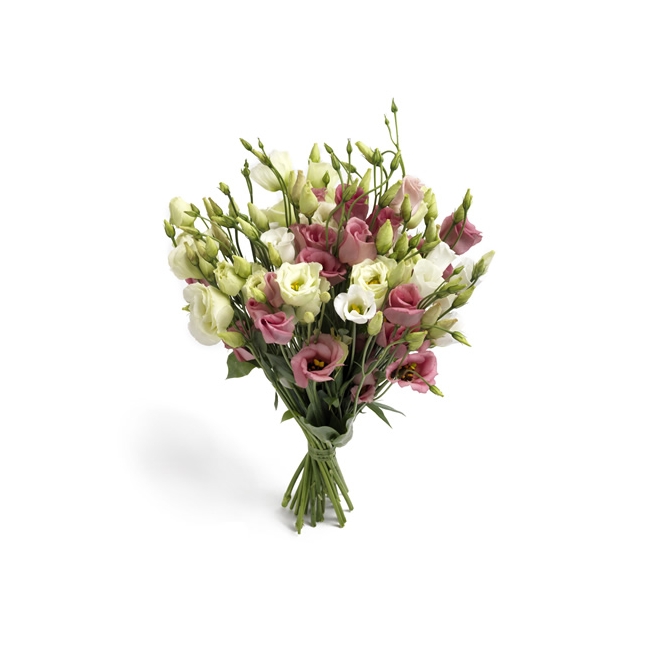 Prisade prärieklockor! En bukett prärieklockor i vitt och rosa, och grön-vitt, formade till en mjuk härlig blomstertwist.