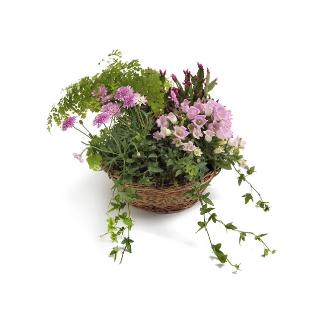 Detta är ytterligare en av våra populära planteringar, här i rosa toner. En härlig mix blommande växter som uppskattas av både mormor, och arbetskollegan!