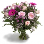 Ungdomens och glädjens färg, i mjuk pastell, rosa blommor charmar oss med oskyldig skönhet. Blomsterbud med vackra rosa blommor i alla nyanser visar a
